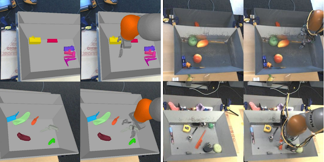 An example of how simulated experience can differ from real-world experience. Here, simulated images (left) have much less visual complexity than real-world images (right). |
